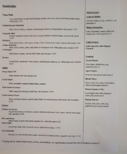 Tuesday-Saturday Lunch 12-3 Dinner 5-8 Sunday Brunch 11-3 Dinner 3-8 Menu subject to change based on availability ***Eating raw or undercooked meat, poultry, and shellfish, can significantly increase the risk of foodborne illness***